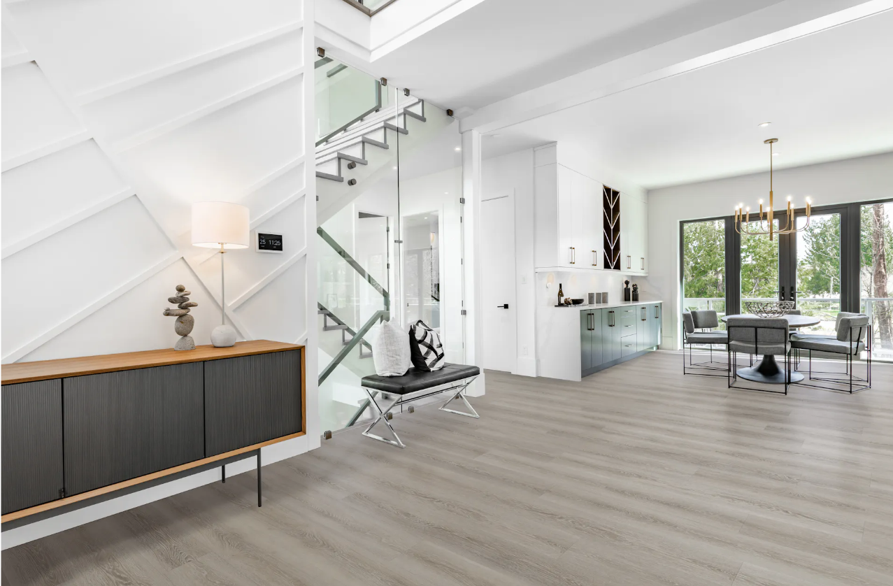 Bird Rock Ridge vinyl planks evoke the essence of driftwood, sandy shores, and the magnificent hues of sunset cliffs. Whether you’re relaxing with loved ones or entertaining guests, Bird Rock Ridge luxury vinyl planks create the perfect backdrop for unforgettable moments by seamlessly blending coastal elegance with modern comfort.