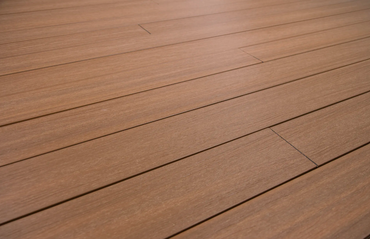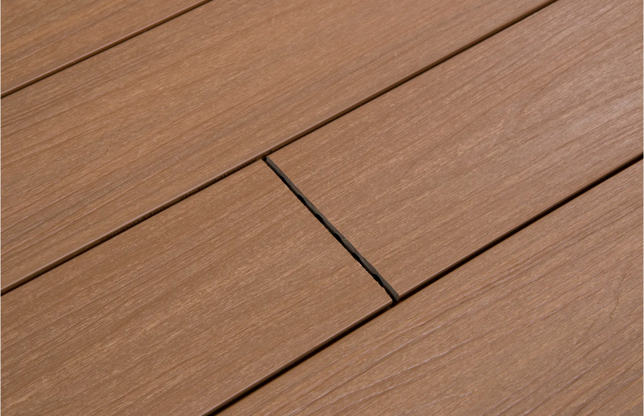 Admire copper-colored decking boards in the color of Sedona while it provides the most solid foundation for your outdoor home life. Spend less time worrying and more time enjoying the outdoors with its low maintenance. Planks come in standard and wide lengths and widths and can be paired with Sedona deck railing.